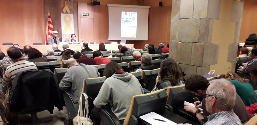 Dissabte 27 de genièr de 2018 s’es debanada a Barcelona la XXI DICTADA OCCITANA, dins la sala de conferéncias del Departament de la Cultura de la Generalitat de Catalonha (Rambla de Santa Mònica, 8).