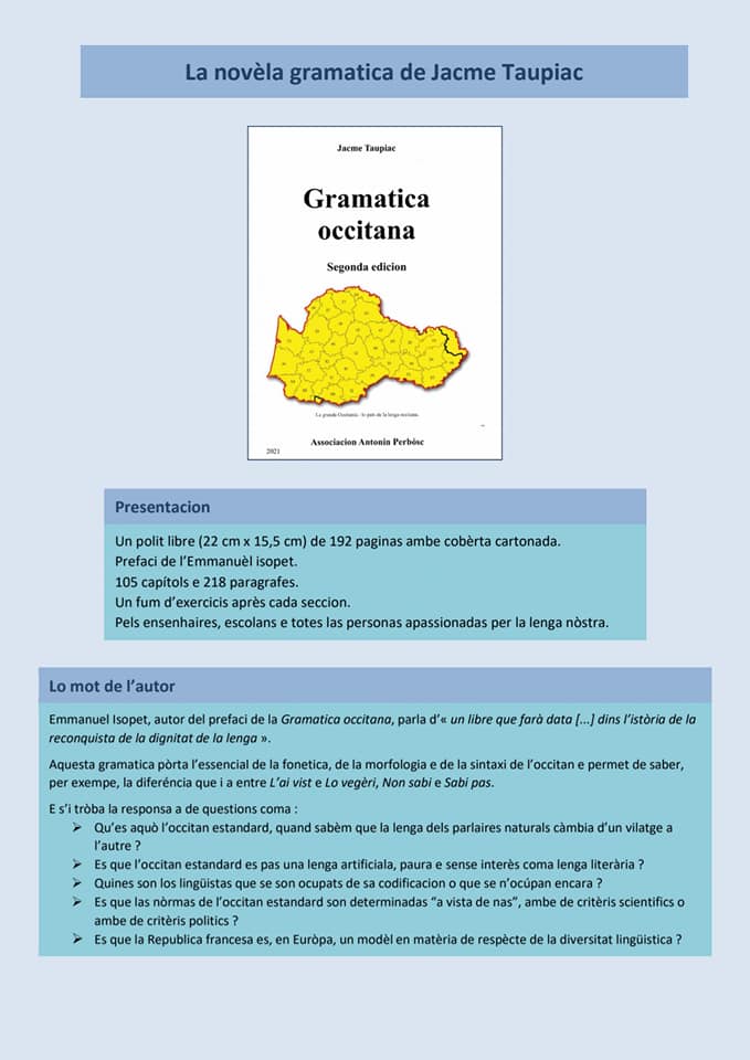 [post_excerpt] => Presentacion de la "Gramatica occitana" (segonda edicion) en carga de l'autor Jacme Taupiac.