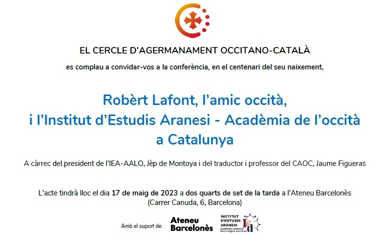 [post_title] => Conferència a l'Ateneu Barcelonès "Robèrt Lafont, l’amic occità, i l’Institut d’Estudis Aranesi - Acadèmia de l’occità a Catalunya"