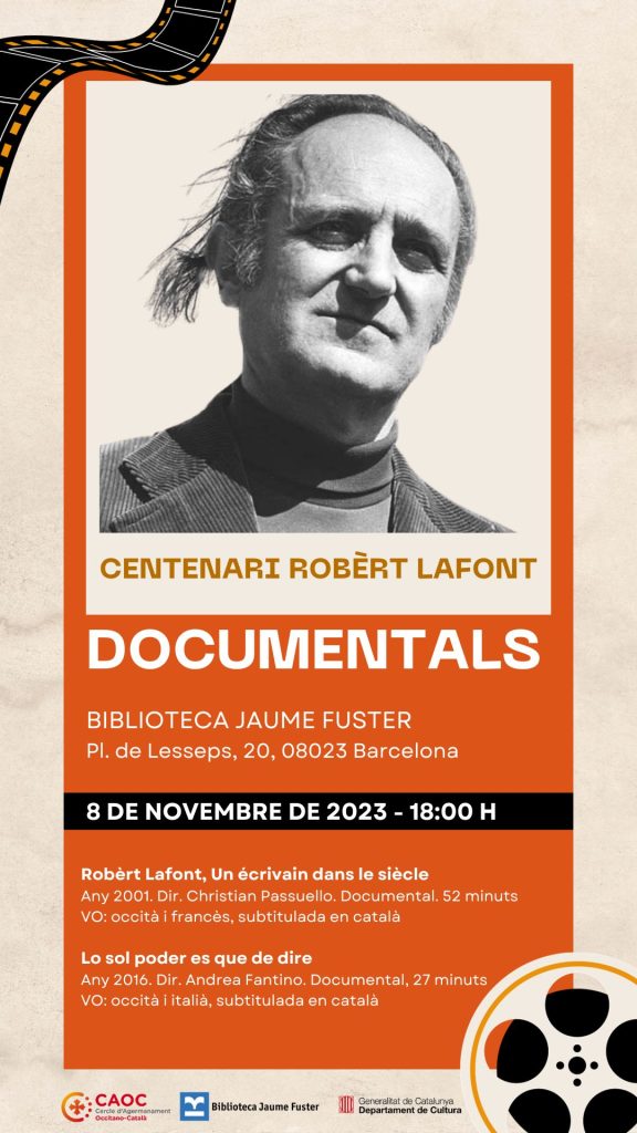 [post_excerpt] => Continuem els actes de commemoració del centenari de Robèrt Lafont amb la projecció de dos documentals sobre la seva vida i obra.