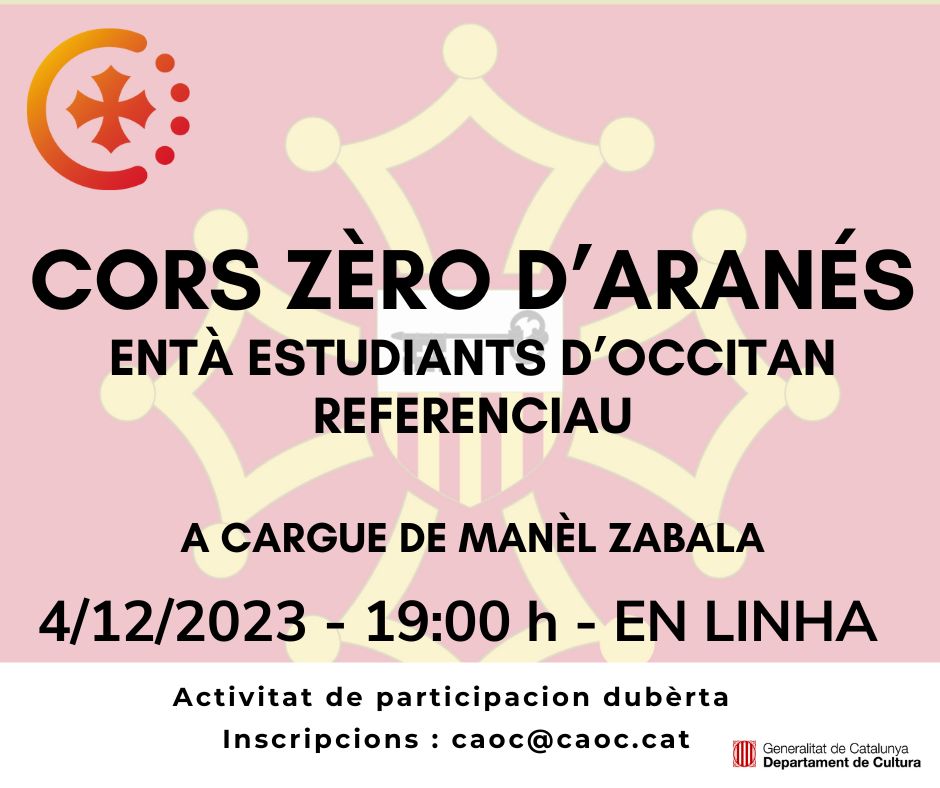 Presentacion dubèrta deth nòste cors d'aranés especiau entà persones que coneishen o estúdien er occitan referenciau. Aguest cors, a cargue de Manèl Zabala, l’iniciaram en mes de gèr, mès ara ne podetz hèr un tastet.