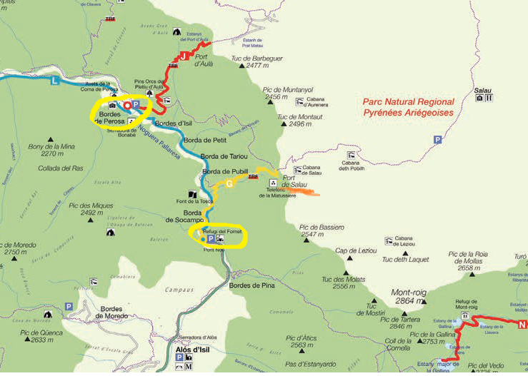 * Cal sol·licitar autorització i pagament d’una taxa per accedir amb vehicle a l’aparcament de Perosa. Accés i nombre de vehicles limitat a 150 vehicles diaris (des del Fornet i Montgarri).