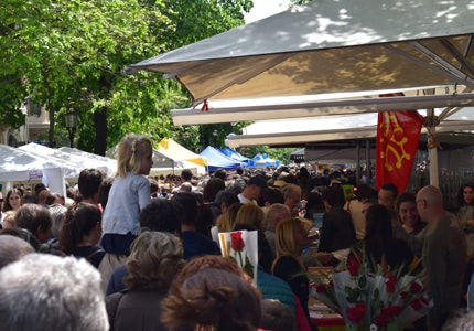 Col·laboració a l’estand de l’entitat durant la Diada de Sant Jordi a la Rambla Catalunya de Barcelona.