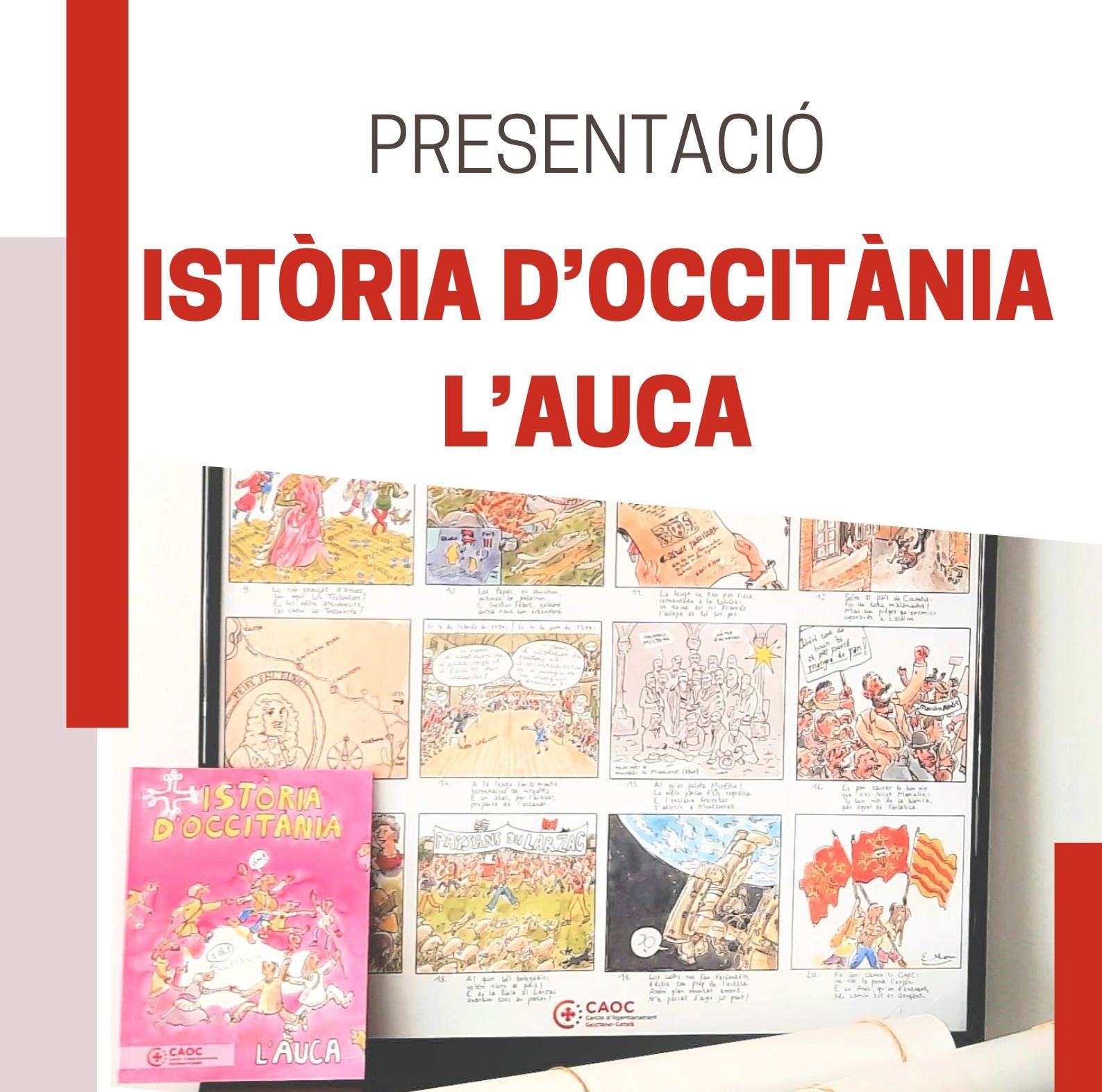 La presentació anirà acompanyada d'una projecció en la qual podrem resseguir a vol d'ocell els principals esdeveniments i personatges de cada període de la història d'Occitània i de l'Auca del CAOC.