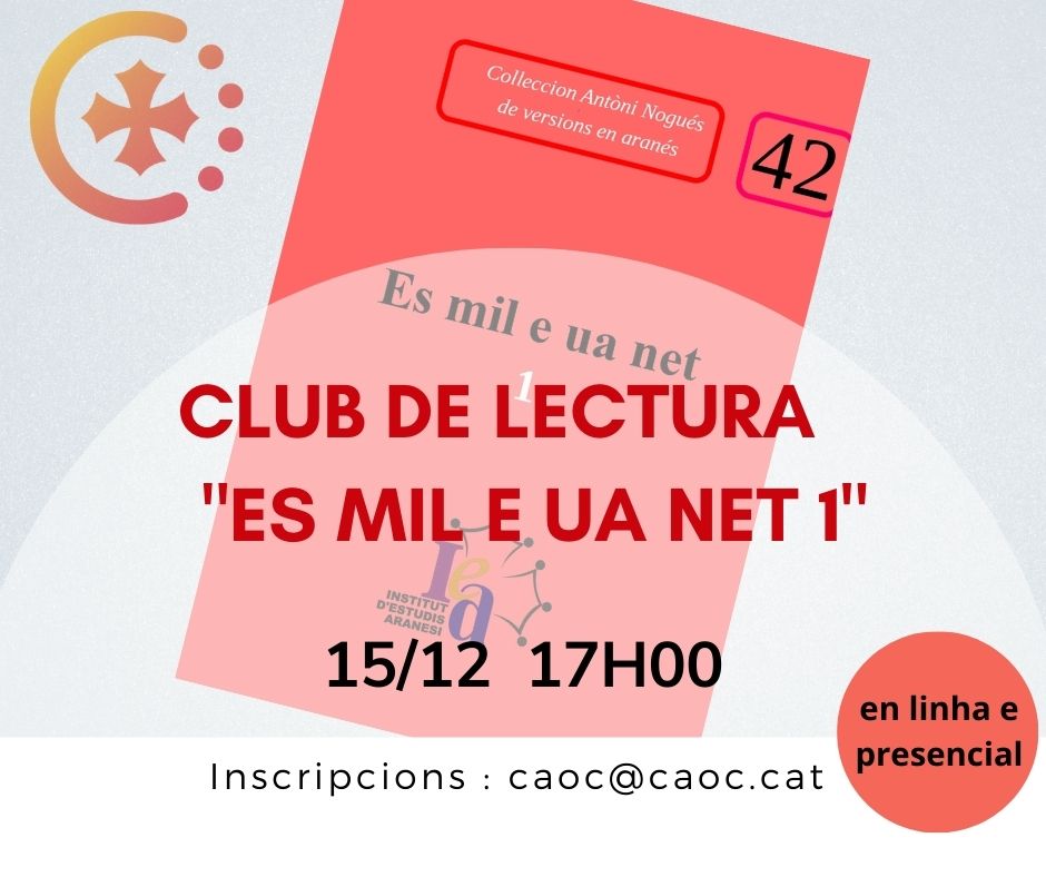 El passat divendres 15 de desembre va tenir lloc la sisena sessió del Club de lectura en format alhora presencial i virtual, com fem habitualment. Vam tancar l’any amb una sessió força diferent de la resta, però interessantíssima, ja que vam poder comptar amb la participació d’Antòni Nogués, el traductor a l’aranès del llibre que havíem llegit, Es mil e ua net.