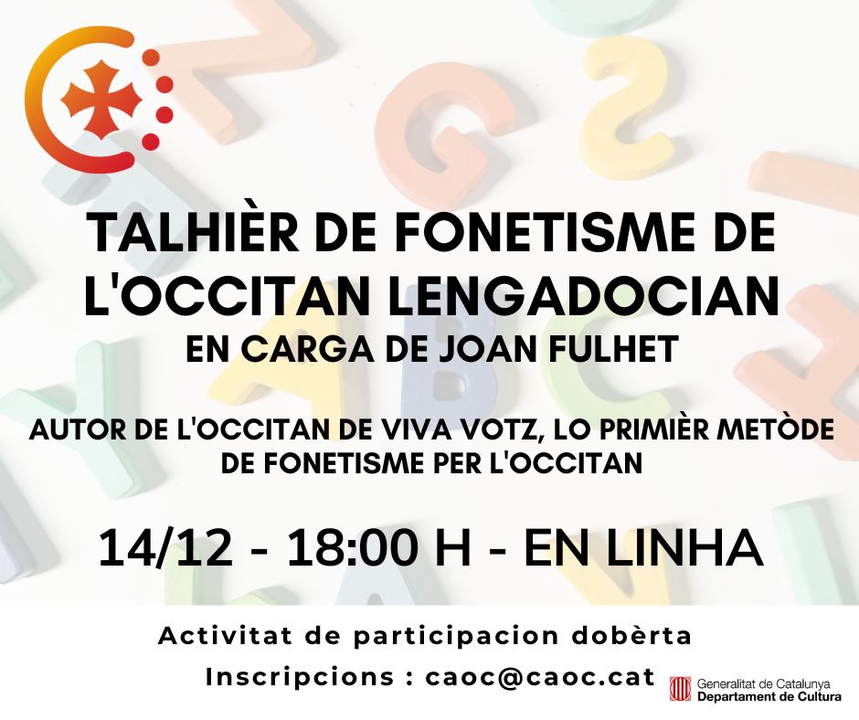 Una session practica e en linha de prononciacion de l’occitan lengadocian en carga de Joan Fulhet, autor del metòde “L’occitan de viva votz”, lo primièr metòde de fonetisme per l’occitan, una aisina primordiala del temps que sa transmission depend majament de son ensenhament.