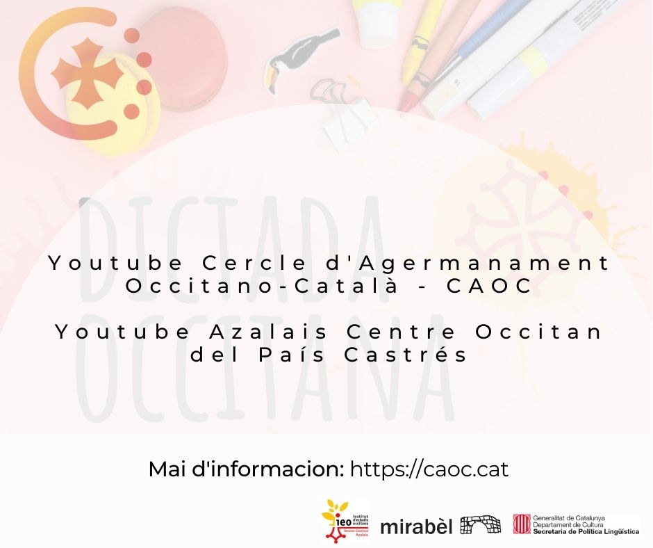 Vaquí tot çò que vos prepausam per l’edicion de la XXVa Dictada Occitana d’ongan, que se tendrà en linha lo 29 de genièr. Una edicion de pas pèrdre, ont comptam èstre nombroses, e que començarà a dotze oras (12:00) sul nòstre Canal Youtube per: